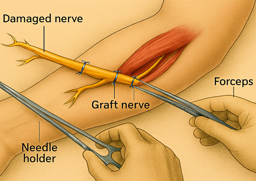 پیوند عصب (Nerve Grafting) روشی است که در آن بخشی از یک عصب سالم از بدن (مانند عصب سورال از ساق پا) برداشته شده و برای جایگزینی بخش آسیبدیده یک عصب حرکتی یا حسی در اندام فوقانی استفاده میشود. این روش زمانی کاربرد دارد که اتصال مستقیم دو سر عصب ممکن نباشد یا فاصله زیادی بین آنها وجود داشته باشد.